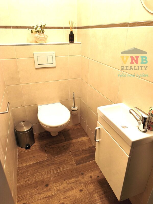 nové WC s umývadlem, technická místnost, prádelna/sušárna s vanou a