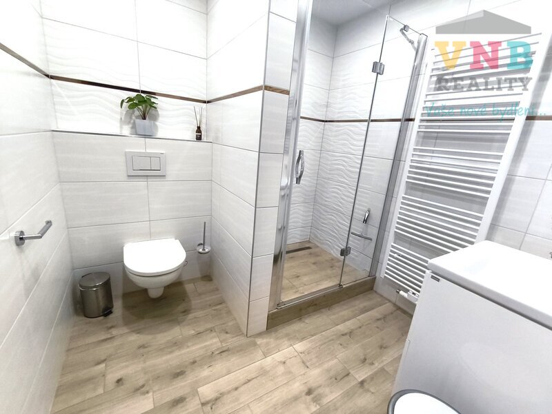 sprchovým koutem, umývadlovou skříňkou a s WC