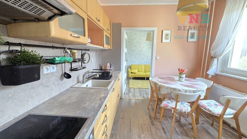 Nabízíme pronájem zařízeného bytu 3+1 s lodžií, který se nachází v 6. podlaží panelového domu s výtahem. Celková plocha bytu je 69 m2. Z chodby se vchází do jednoho samostatného pokoje, koupelny s vanou a WC a do obývacího pokoje se vstupem na lodžii a do kuchyně, za kterou je další samostatný pokoj. Byt je v dobrém stavu, ihned k nastěhování. Parkování u domu. Nájemné je 12.000,– Kč + zálohy na energie ve výši 5.682,– Kč/ měs. Kauce a provize RK ve výši 12.000,– Kč.