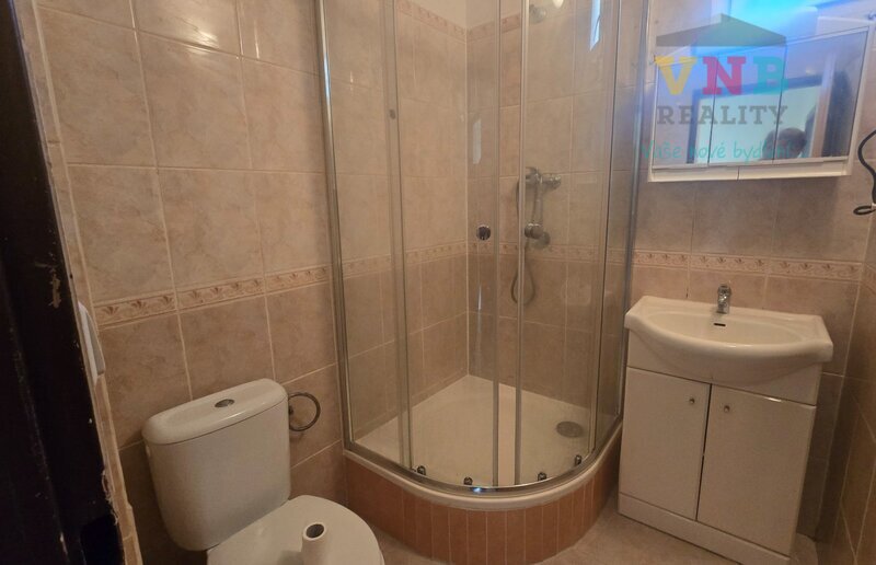 o výměře 5,5m2. Z předsíně je vstup do koupelny se sprchovým koutem.
